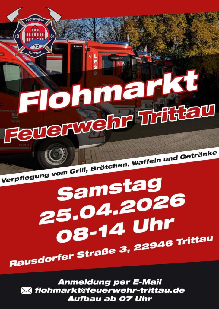 Wer mit einem eigenen Stand teilnehmen möchte, kann sich per E-Mail unter flohmarkt@feuerwehr-trittau.de anmelden. Der Aufbau beginnt ab 07:00 Uhr.